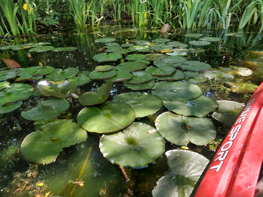 Rzeka płynie wśród łąk i lasów, w większości zacieniona